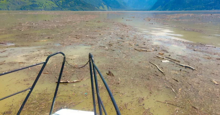 Телецкое озеро является проточным. К середине июня мутные воды Чулышмана достигают кордона Челюш.