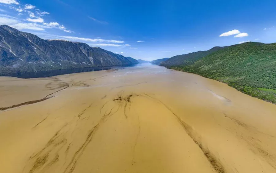 Сотрудники Алтайского заповедника запечатлели уникальные кадры впадения мутных паводковых вод реки Чулышман в прозрачное Телецкое озеро, сообщают "Новости Горного Алтая".