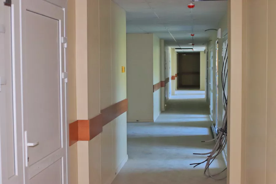 Палаты, которые разместили на втором и третьих этажах, рассчитаны на разное число пациентов, но у каждого из них будет свое индивидуальное освещение. Специальные лампы указывают, где будут стоять кровати.