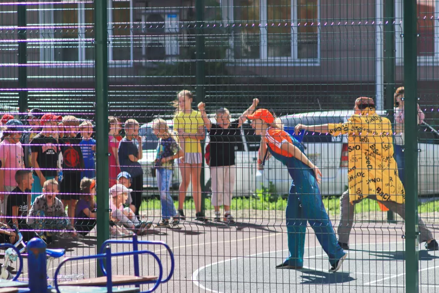 В районе новостроек у переезда, рядом с пересечением ул. Трофимова и ул. Севастопольской, во дворе устроили настоящий праздник – с музыкой, воздушными шарами и куклами-великанами. Появления здесь большой спортивной площадки, заниматься на которой смогут и взрослые, и дети, ждала вся округа.