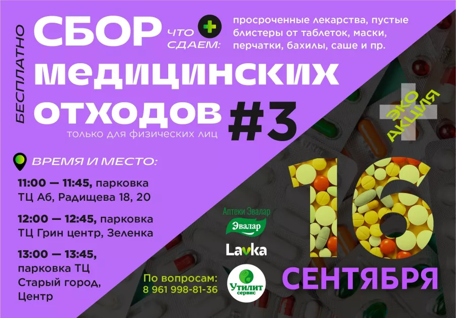 16 сентября волонтеры будут принимать медицинские отходы для утилизации от населения.