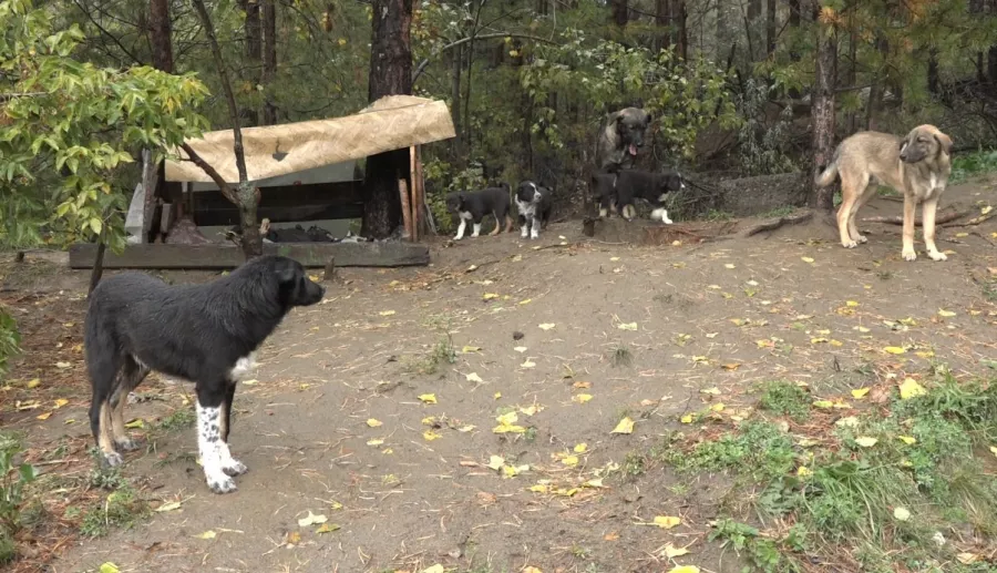 Меж тем в лесочке у Сорокино съемочная группа Бийского телевидения обнаружила стаю и домики, обитые линолеумом. Явно, что такие комфортные будки собаки смастерили не сами. Зато тут они выкармливают свой приплод.
