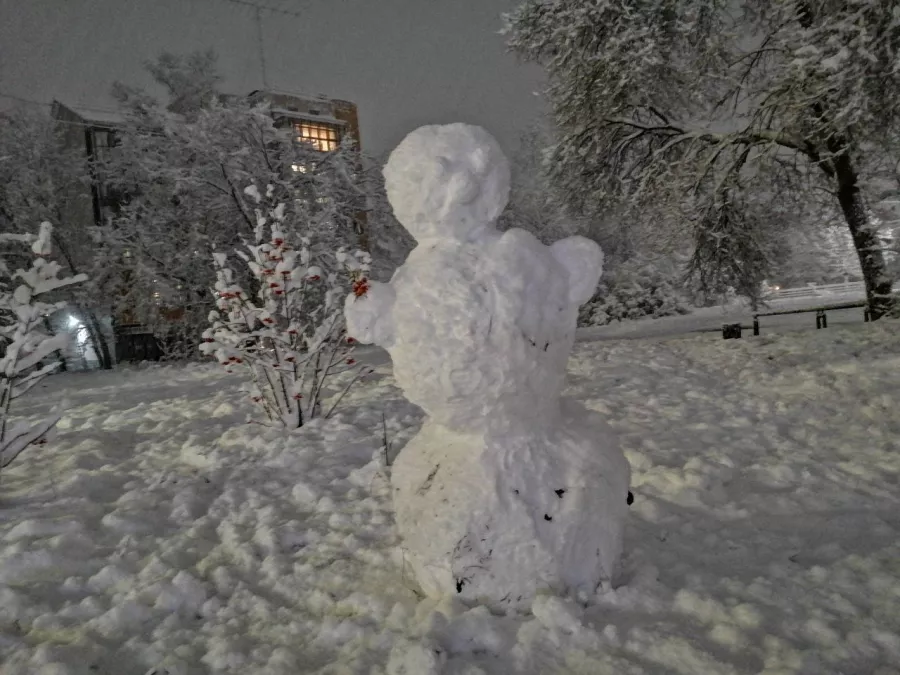 С первым снегом во дворах бийчан появились первые снеговики. Каждый снеговик индивидуален.