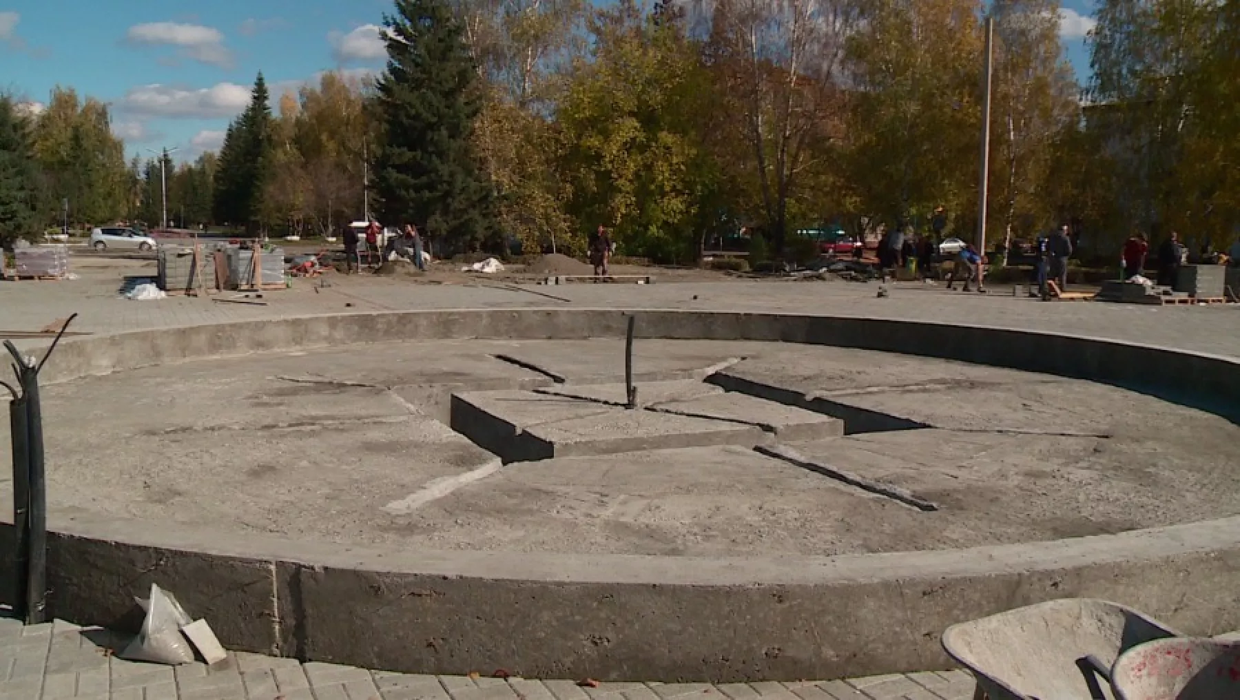 Параллельно с этим ведутся и работы по реконструкции фонтана. От прежнего объекта остались только место и габариты. Новая конструкция будет облицована искусственным камнем, а еще фонтан будет подсвечен светильниками.
