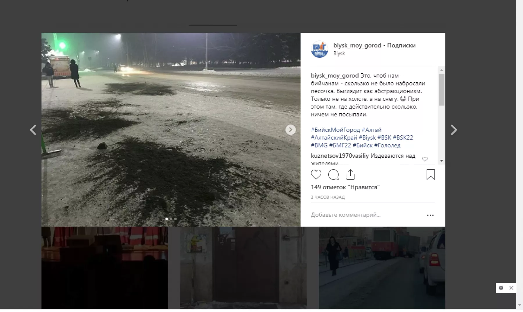 Негативные мнения о состоянии остановок оставляют читатели и в соцсетях на наших страницах «Бийск мой город». Так, сегодня один из посетителей выложил вечернее фото остановки, где дорожники оставили три «абстрактных» кучки песка. «Причем не в том месте, где скользко!», - прокомментировал автор фото.