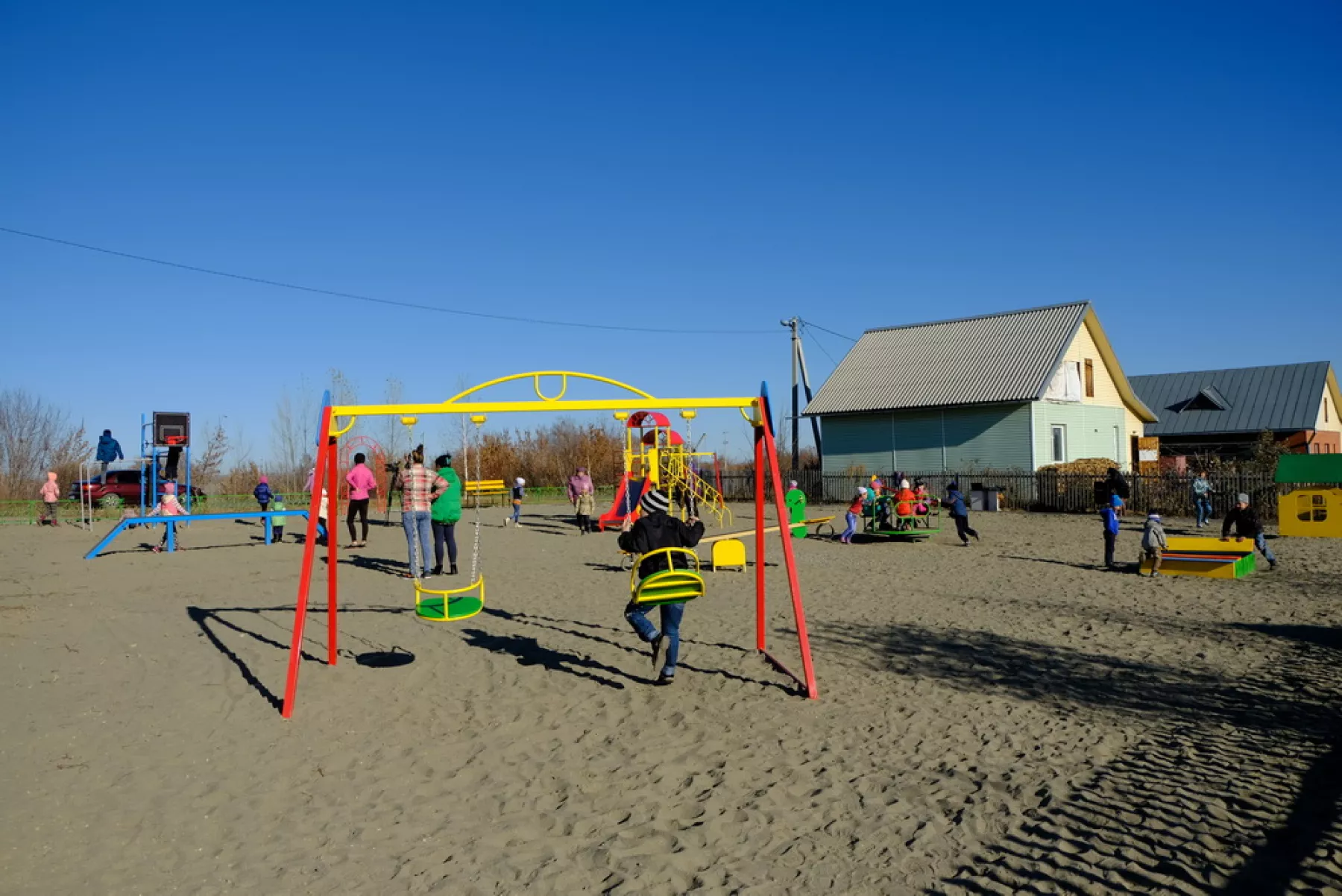 Площадку в поселке Восточном построили общими усилиями. Теперь малыши играют на новых качелях, а взрослые не волнуются за их безопасность.