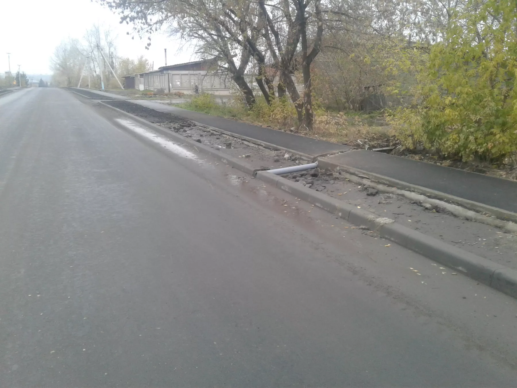 Однако, в низине на новеньком асфальте начала скапливаться лужа, после дождей разливающаяся практически на всю ширину дороги.