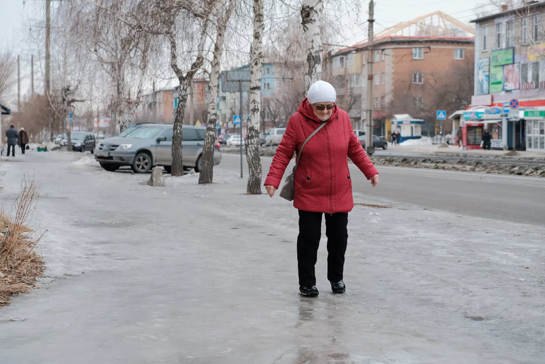 Пройти по улицам, не беспокоясь за свою безопасность, почти невозможно. А выпавший накануне снег, теперь скрывает под собою зеркальную корку льда.