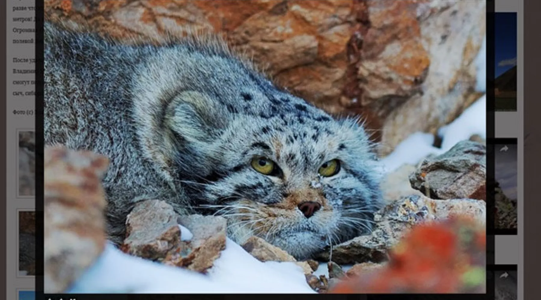 «Манул для любого фотографа дикой природы – топ-зверь. Это как для гурмана рыба фугу или для блондинки – «Ferrari». Ощущение, как будто выиграл в лотерею! – написал Владимир Мац.