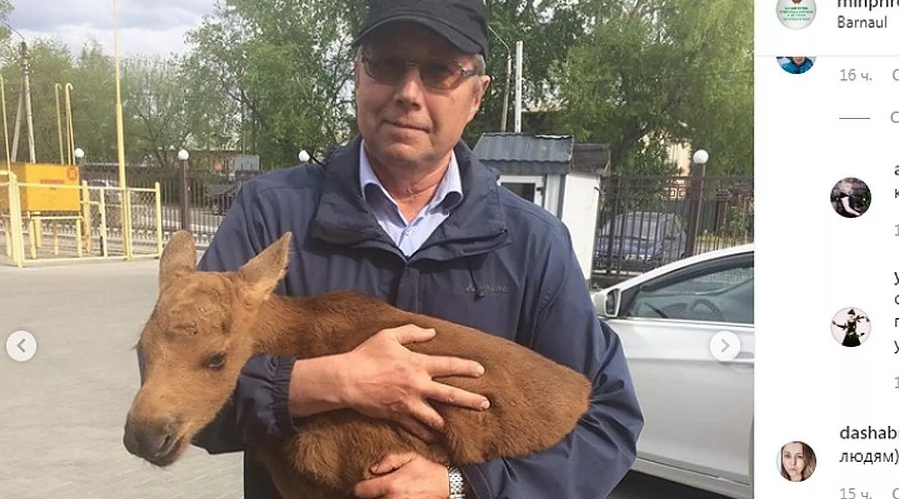 Госинспектор минприроды края Геннадий Самаркин принял решение отвезти лосенка в Барнаул руководителю общественной организации помощи диким животным «Ноев ковчег» Артему Кучеру. Здесь малыш подрастет, после чего вернется в леса к своим собратьям, отмечает газета.
