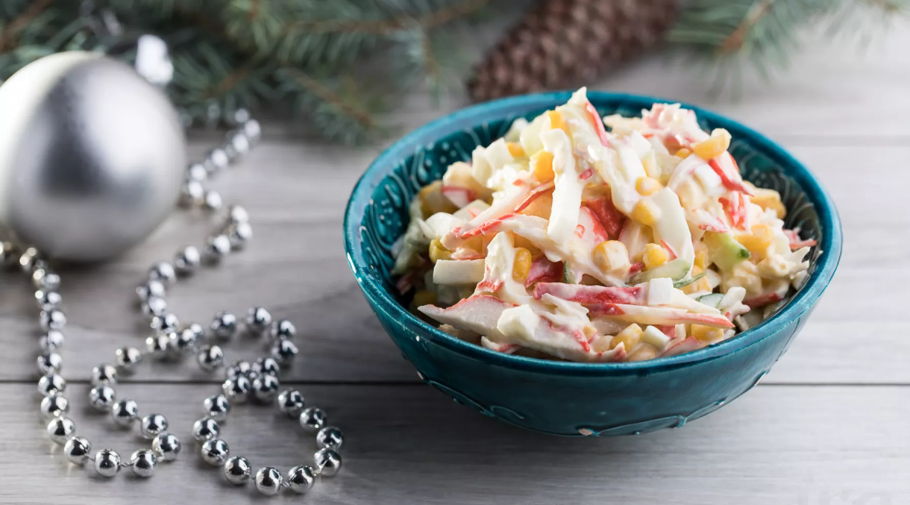 Отмечается, что для расчётов использовался классический рецепт, в который входят крабовые палочки, яйца, огурцы, банка консервированной кукурузы, майонез, соль.