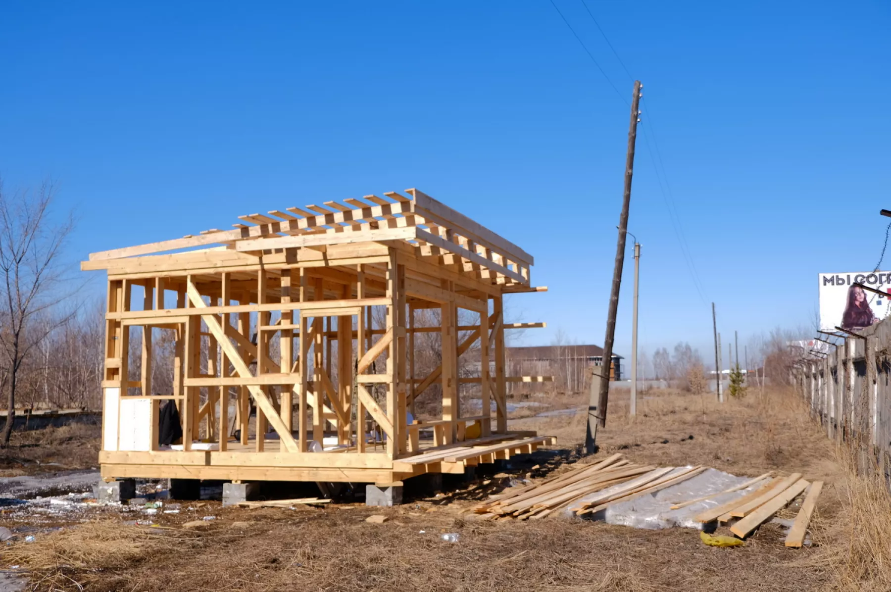 Сейчас с дороги по Социалистической уже видно деревянный каркас. Это не храм, а церковная лавка. Сам храм расположится за ней. Сваи-основы уже забиты. Далее в течение двух недель здесь соберут металлический каркас, на который закрепят сэндвич-панели. Словом, материал для храма, мягко говоря, не совсем традиционный. Подрядчики говорят, что в Бийске ничего подобного нет, а вот по Сибири такие храмы из современных стройматериалов уже стали появляться. Как будет выглядеть храм – нам показывают на смартфоне. Рассчитан он человек на 60. Не исключено, что это помещение-скорострой будет временным, потому как в планах прихожан строительство здесь и белокаменного храма.