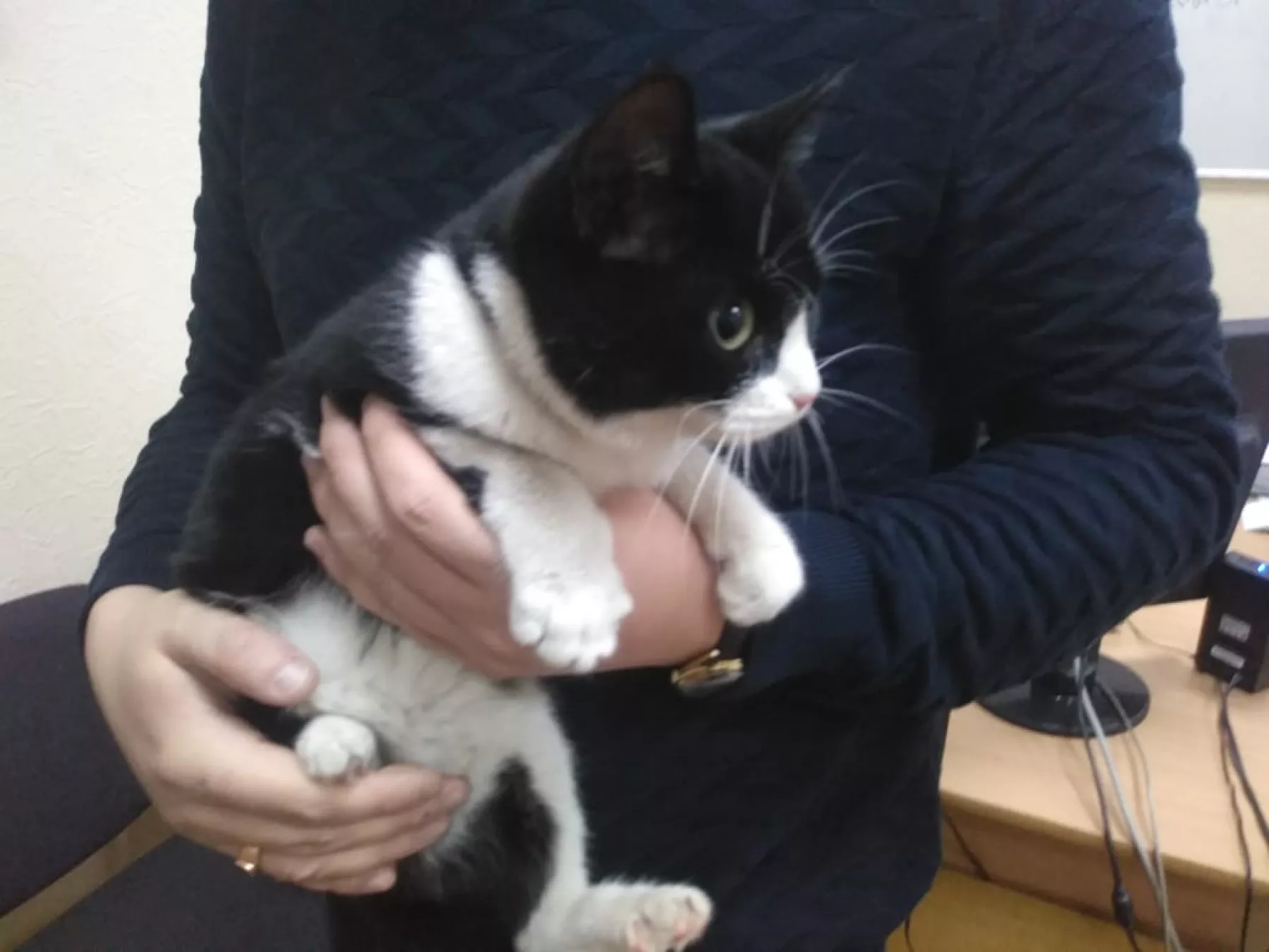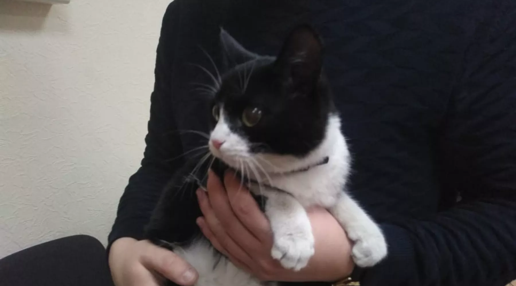 В редакцию забежал домашний котик. По всей видимости, потерялся он совсем недавно – зверек ухоженный и носит ошейник.