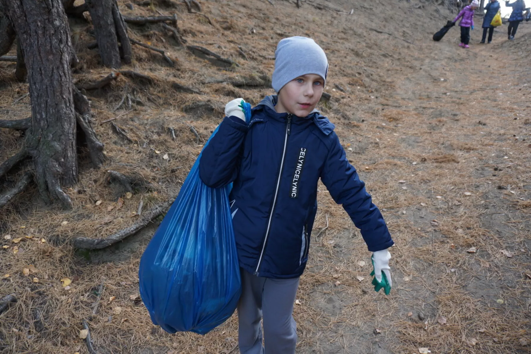 Всего в экологической акции приняло участие больше пятидесяти ребят, координировали их работу неравнодушные родители, которые не пожалели времени и помогали ребятам таскать мешки, куда отправились фантики от конфет, пластиковые бутылки, окурки, бумага и даже скелет, предположительно динозавра (шутка).