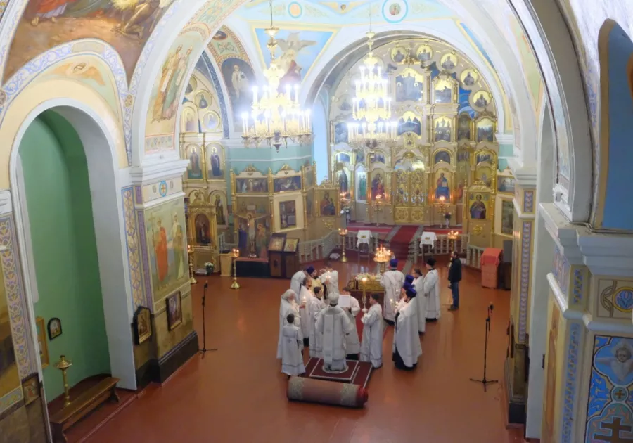 Поскольку региональный Роспотребнадзор запретил участие прихожан в Пасхальном богослужении, на службе присутствовали только священнослужители. Правда, несколько десятков горожан все же пришли к храму. Всю службу верующие стояли с зажженными свечами за воротами храма.
