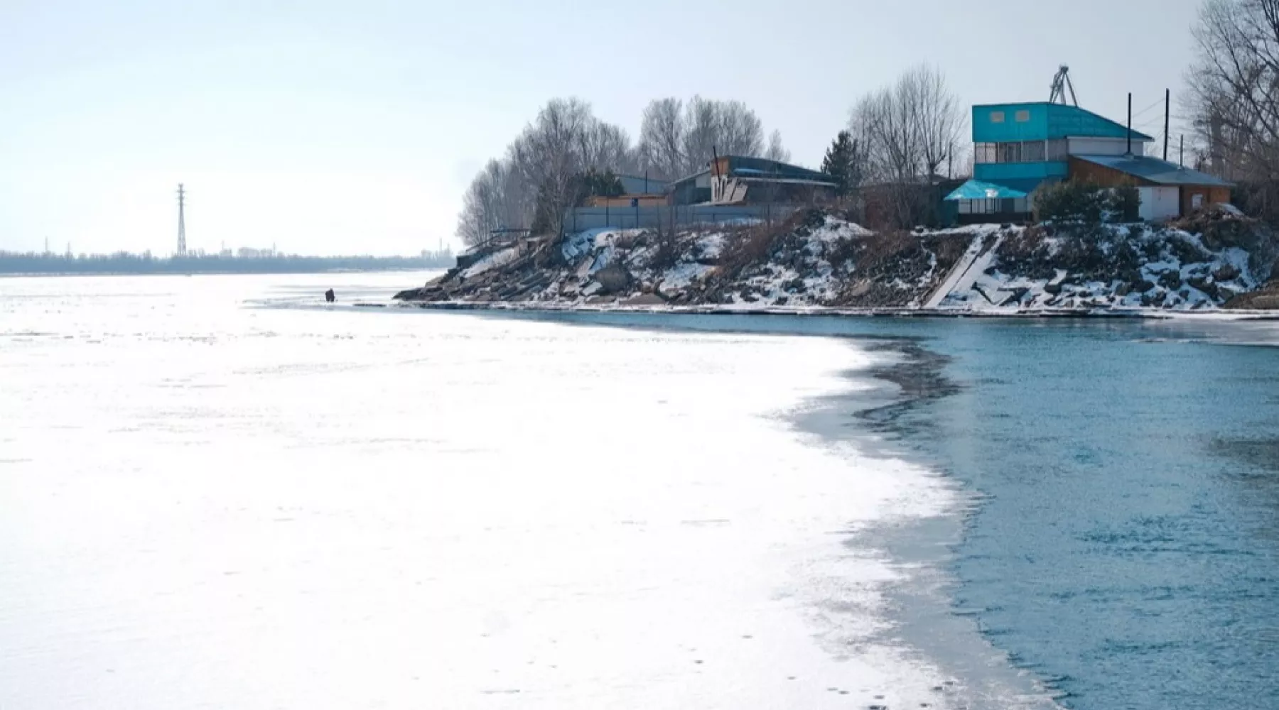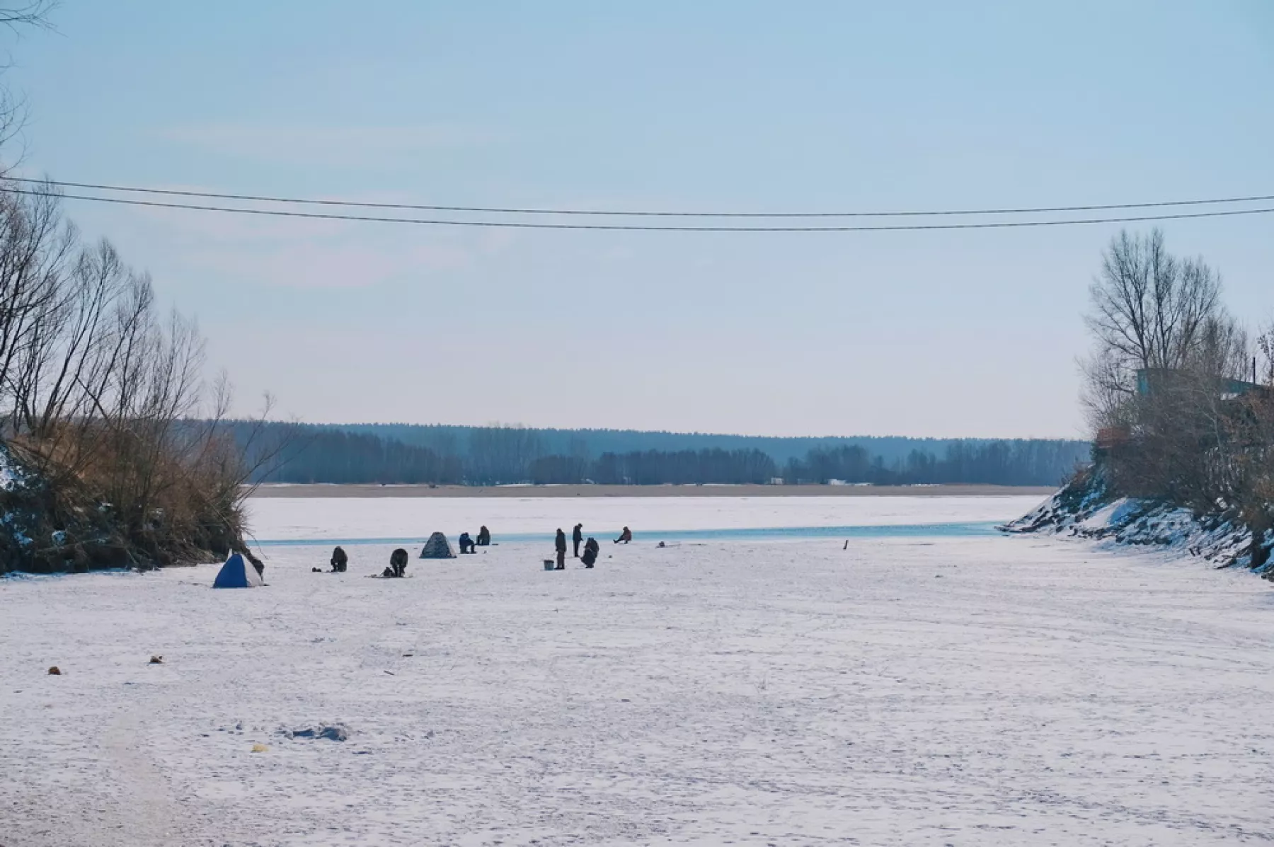 На Бии лед пока остается белоснежно чистым. Хотя местами вдоль берега уже появились промоины, в которых кружат водовороты. Тут же неподалеку на льду сидят отважные рыбаки…