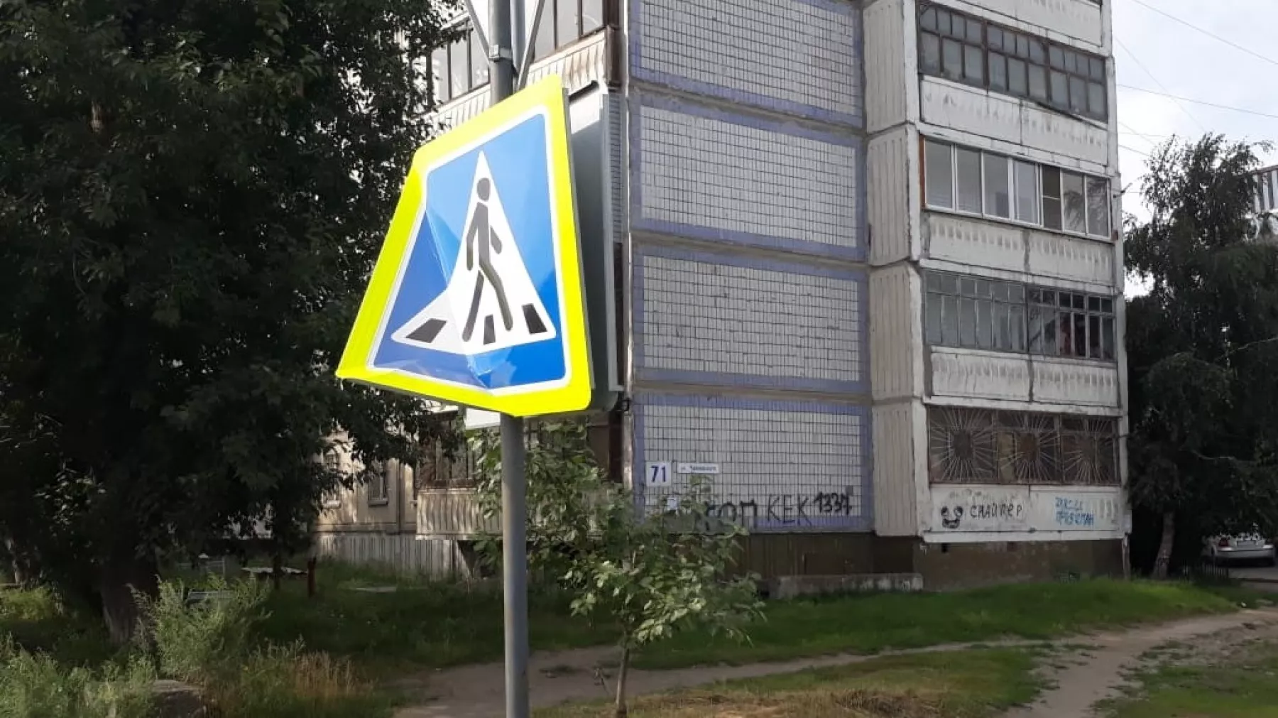 Неизвестный товарищ из разряда «сила есть – ума не надо» решил, что дорожные знаки в районе новостроек на Матросова какие-то некрасивые. «Я художник, я так вижу» - подумал деятель, и художественно погнул с десяток знаков «Пешеходный переход». Теперь мэрия будет эти «художества» исправлять – за 133 тысячи рублей.