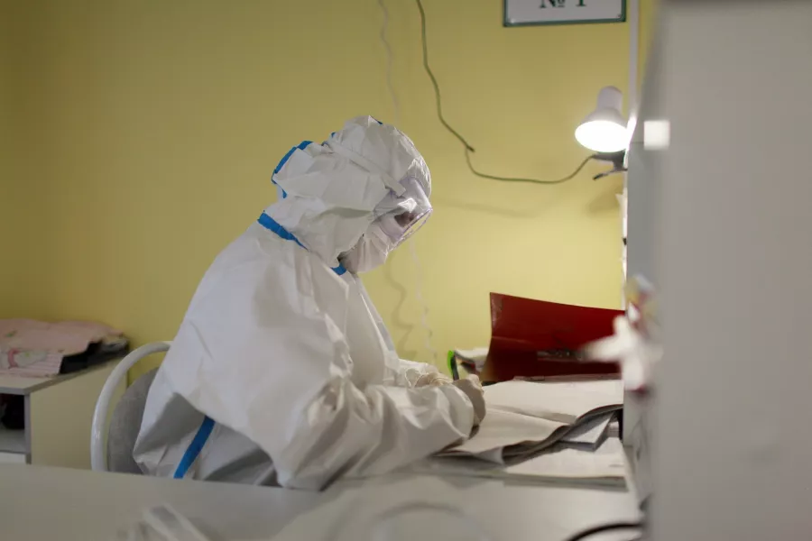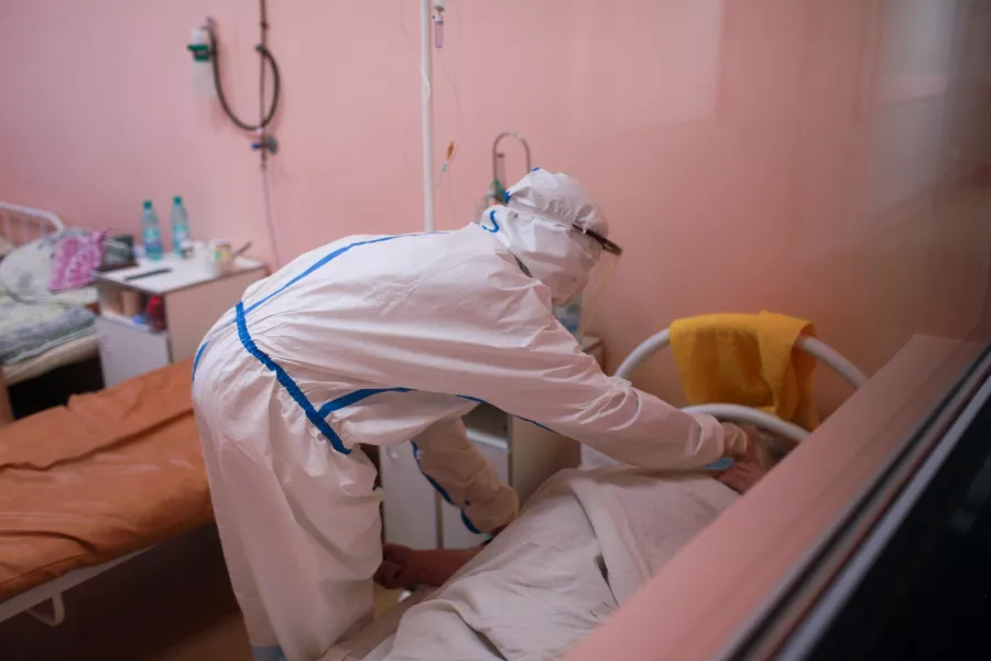 Просто так в провизорный госпиталь не попадешь. Прежде чем войти в инфекционное отделение ЦГБ, где лежат больные коронавирусом, нужно облачиться в специальные защитные костюмы. Маски, перчатки, бахилы – обязательно. В них душно и жарко. Медики работают в таких целыми днями. Устают, но не жалуются. Они знают – тем, кому помогают, гораздо хуже.