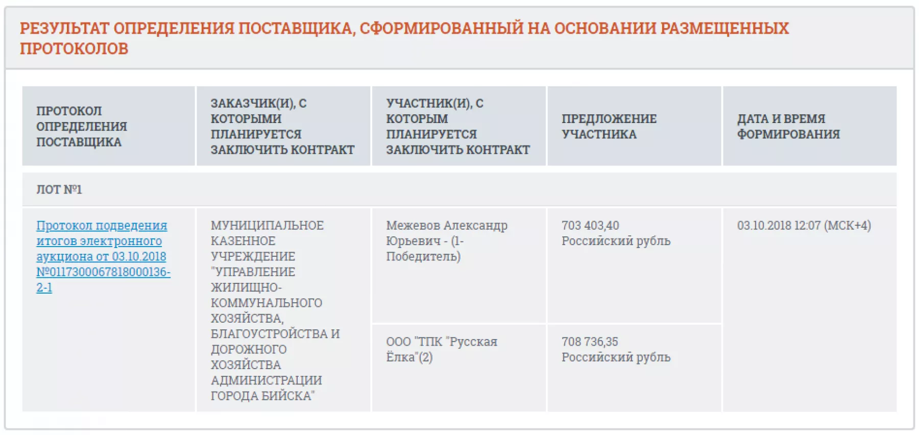 Тем не менее на сайте госзакупок указано, что победителем аукциона стал ИП Межевов Александр Юрьевич.