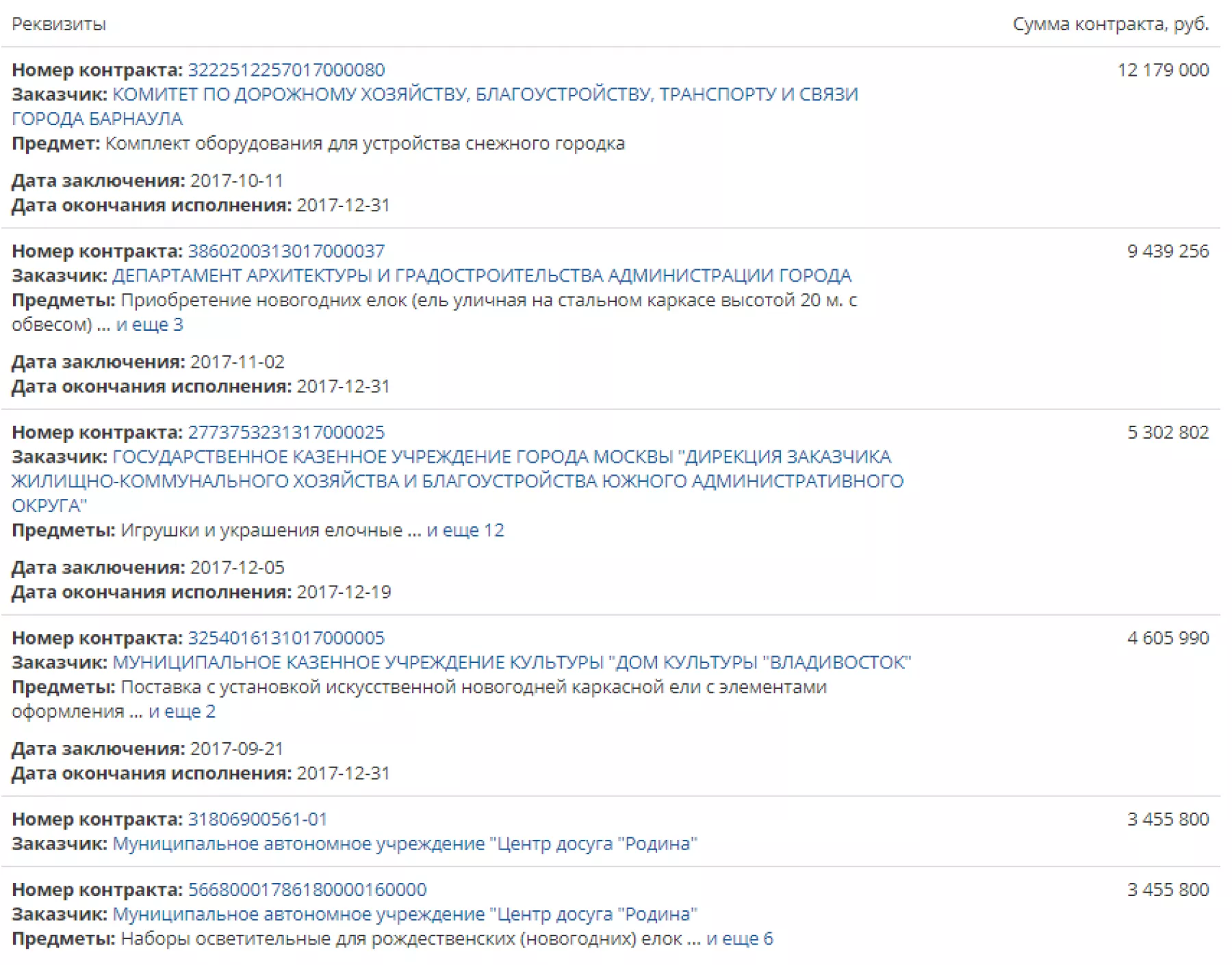 Судя по информации из сети, это предприниматель из подмосковной Коломны, и на продаже новогодней атрибутике он специализируется как минимум с 2015 года. Есть информация о 267 его заказах. Среди прежних его контрактов - поставка как небольших гирлянд и арт-объектов, так и масштабных комплексов новогодних городков.