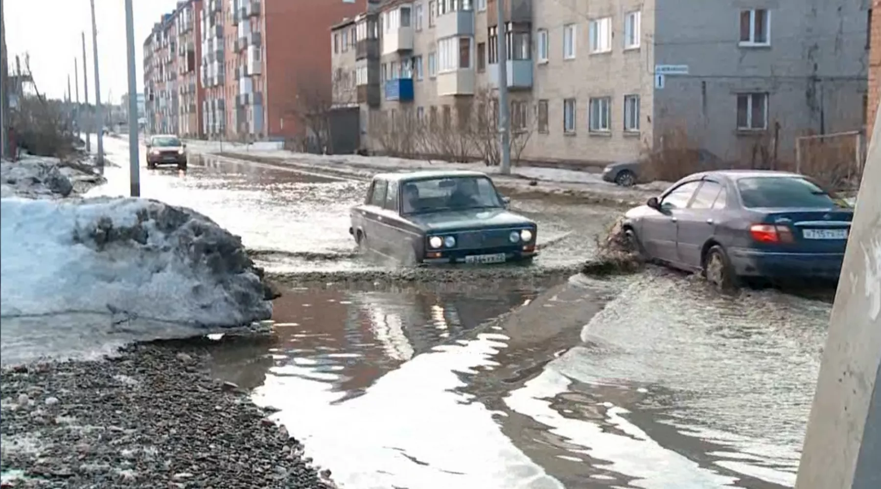 Вода залила улицы Кутузова, Матросова, Социалистическую и Мерлина. На улице Матросова ливневая канализация перегружена и не справляется с возросшими объемом талой воды. А лужу на улице Кутузова автомобили, нарушая ПДД, объезжают по тротуару.