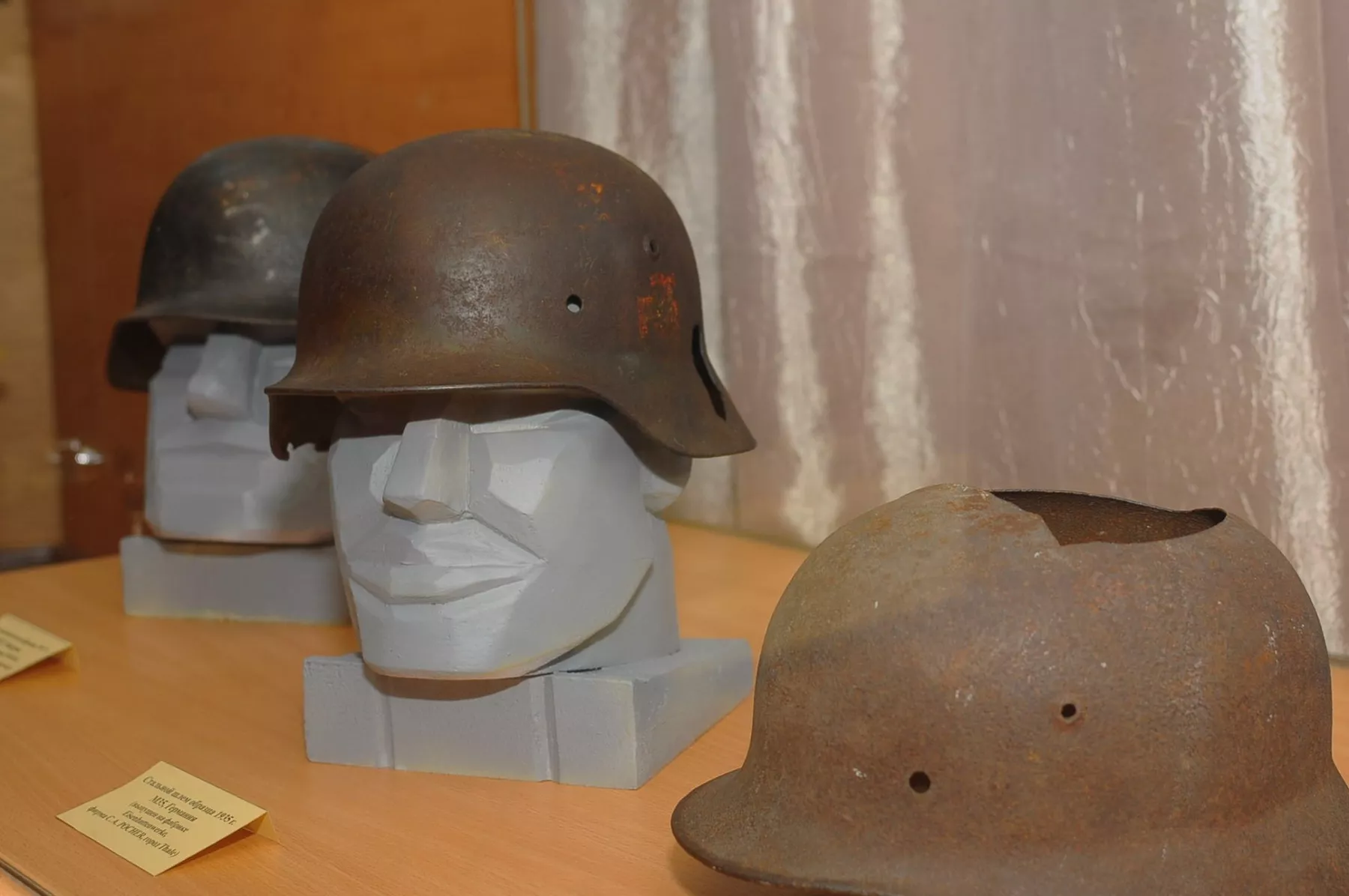 Дары войсковых частей, трофейные, с мест боев. Кто-то вывозил в память о войне аккордеоны, баяны, гармошки, посуду, котелки, ложки для хозяйства, а некоторые фронтовики шлемы противника, чтобы дети помнили. Самыми ценными в историческом плане считаются шлемы, привезенные с мест боев: Карелия, Ельня, Кандалакша.