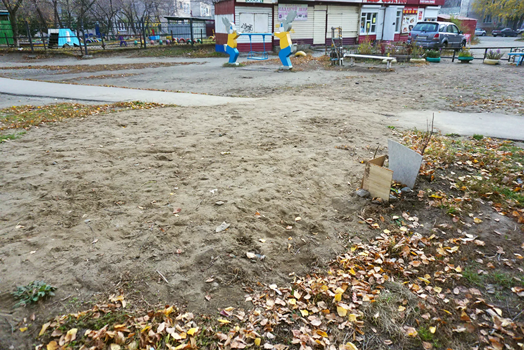 Следующий адрес неподалеку. Там долго искать не приходится. Прямо по детской площадке тянется песчаная дюна, которая пересекает асфальтированную пешеходную дорожку и упирается в кусты. Жильцы вновь приходят на помощь, на сей раз с должным эффектом.