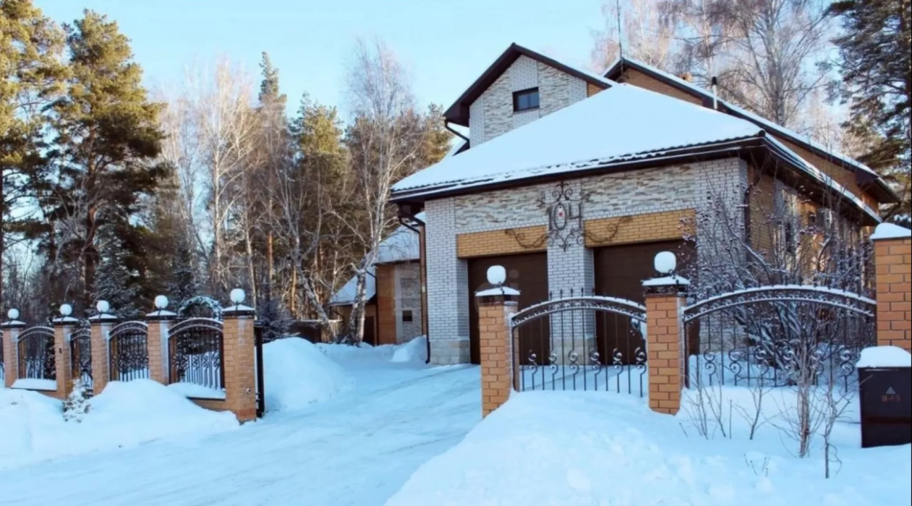 В доме есть гостиная с камином, кухня-столовая, укомплектованная мебелью и современной техникой, кабинет, спортивный зал, санузел с душевой кабиной, подсобные помещения и котельная, а также три спальные комнаты, комната для гостей, просторная ванная и холл с витражным освещением.