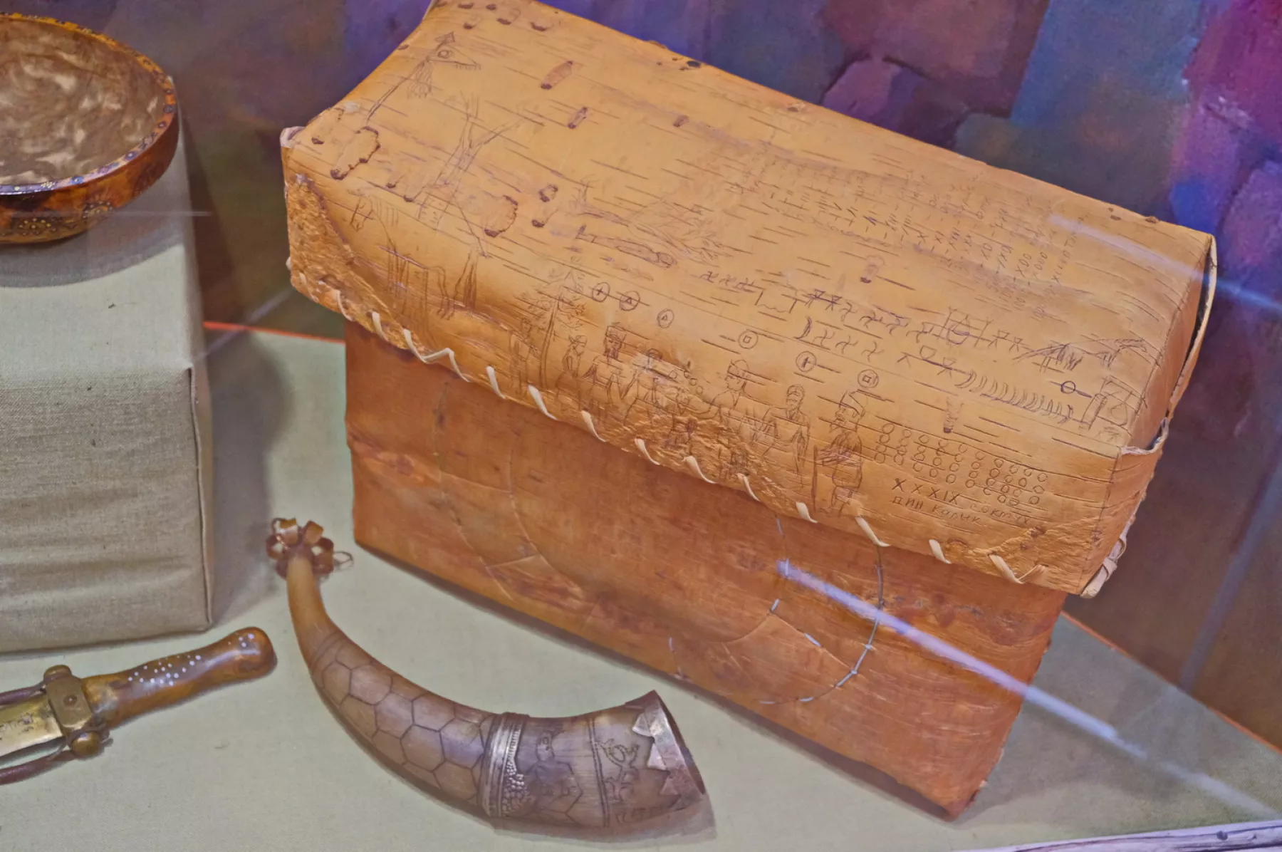 - Экспозиция полна редкими экспонатами, - рассказывает Дмитрий Ерошкин, научный сотрудник БКМ им. В. В. Бианки. - Последний шаман Макар Костораков передал в дар музею уникальные вещицы: шаманский бубен, берестяной короб с традиционным земледельческим календарем кумандинцев. Есть здесь и меч шамана (оберег от нечистых духов, который держали в доме, особенно часто использовали на похоронах). Кумандинцы также проводили жертвоприношения. Обратите внимание на фигурки, вроде бы, смешные «Веселые человечки», а это особые духи «Старушки», которые хранили род. Они не просто так оберегали членов семьи, их нужно было «подкармливать» - приносить им жертвы. Древние кумандинцы обычно в жертву приносили лошадь, энергия и жизненная сила которой должна была кормить духа, а уж он в ответ на такое обязательно посылал благополучие роду.