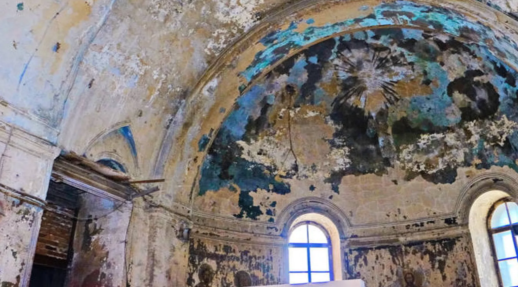 Вокруг храма-кузни – протоптанные дорожки. Видно, что ходят тут часто – то ли проверяющие, то ли верующие, то ли сами заводчане. Внутри холодно. Пол земляной, в высоту до купола – десятки метров. По стенам, когда-то побеленным, пробегают редкие трещины и разводы ржавчины. Похоже, когда-то тут было водоснабжение, но сейчас коммуникаций нет.