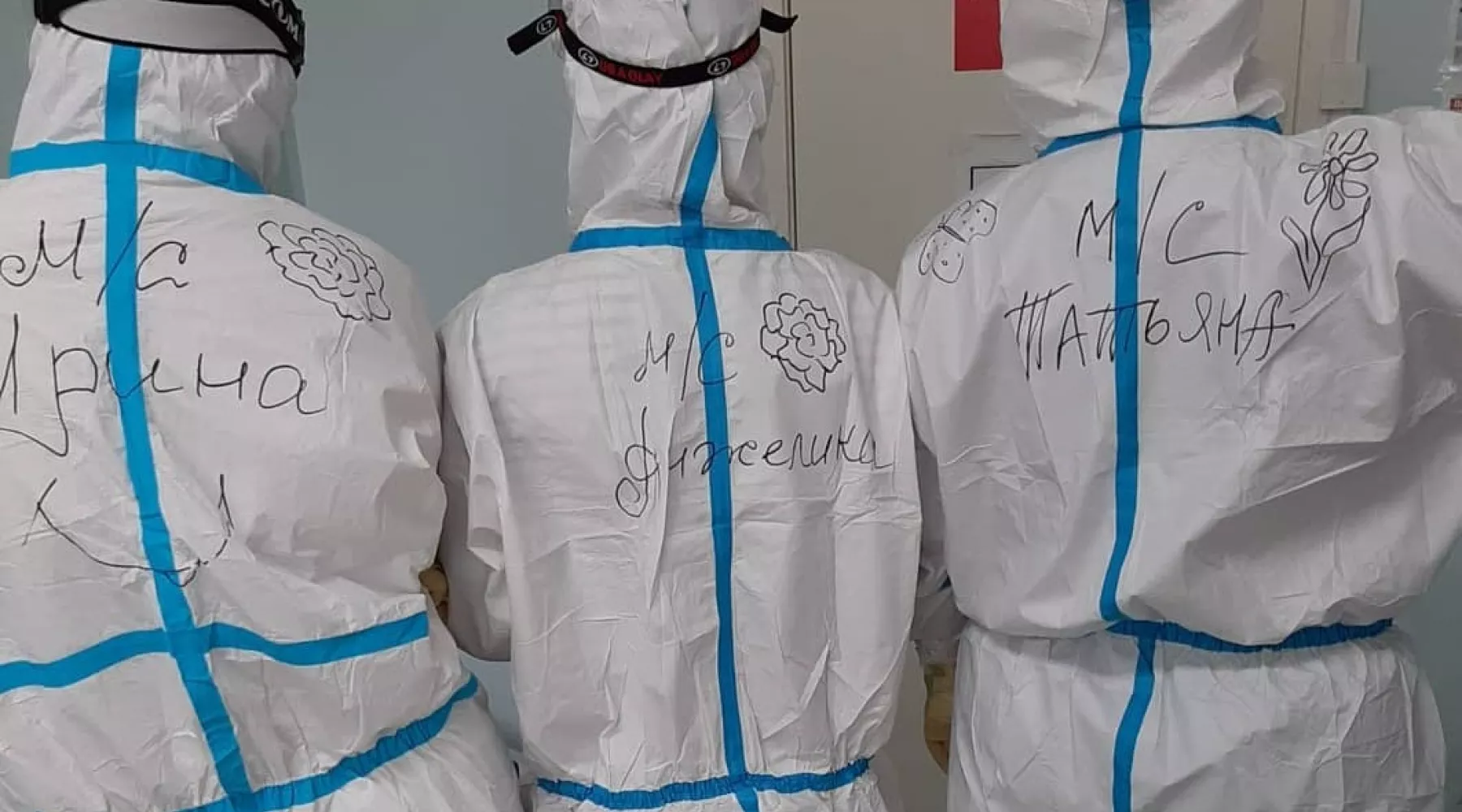 На фотографиях можно увидеть, как медсёстры на спине своих защитных костюмов маркером написали свои имена, а также украсили надписи цветами, улыбками и бабочками. Надписи имеют важное значение, так как помогают различать людей, чьи лица целиком закрыты масками.