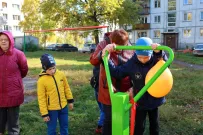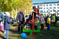 Во дворе дома № 111 прошел праздник в честь открытия спортивной площадки. После долгого ненастья, даже солнце выглянуло из-за туч посмотреть на происходящее.