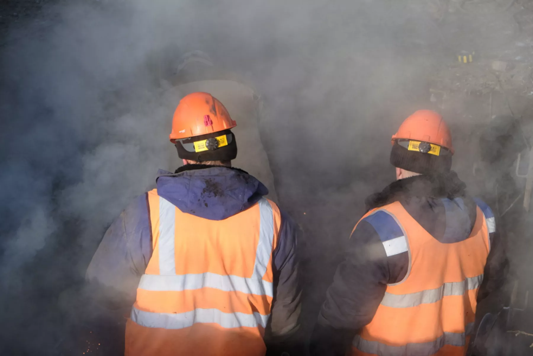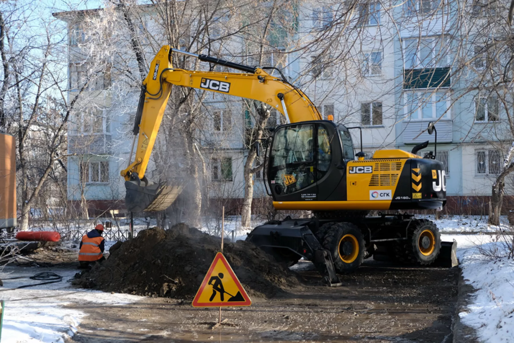 Рабочие проводят ремонт теплотрассы на улице Декабристов.
