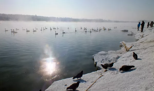 Уникальность этого места в том, что в черте промышленного города-наукограда есть незамерзающий даже в 40-градусные морозы участок реки – там, где бийская ТЭЦ сбрасывает теплые воды. Вот уже пятый год прилетают сюда на зимовку очень осторожные птицы – лебеди-кликуны, занесенные в Красную книгу. Лебедь-кликун издает в полете подобие курлыкания с присвистом, однако это не голос птицы, а всего лишь «поющее» оперение: в момент полета воздух соприкасается с перьями на их крыльях, и те издают такие очаровывающие звуки.