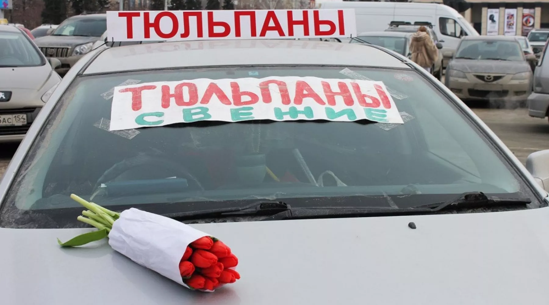 В Бийске началась уличная торговля цветами к 8 Марта. Автомобили с надписью "Цветы" появились на Площади 9 января, у Городского суда, на остановке Стахановской и не только.