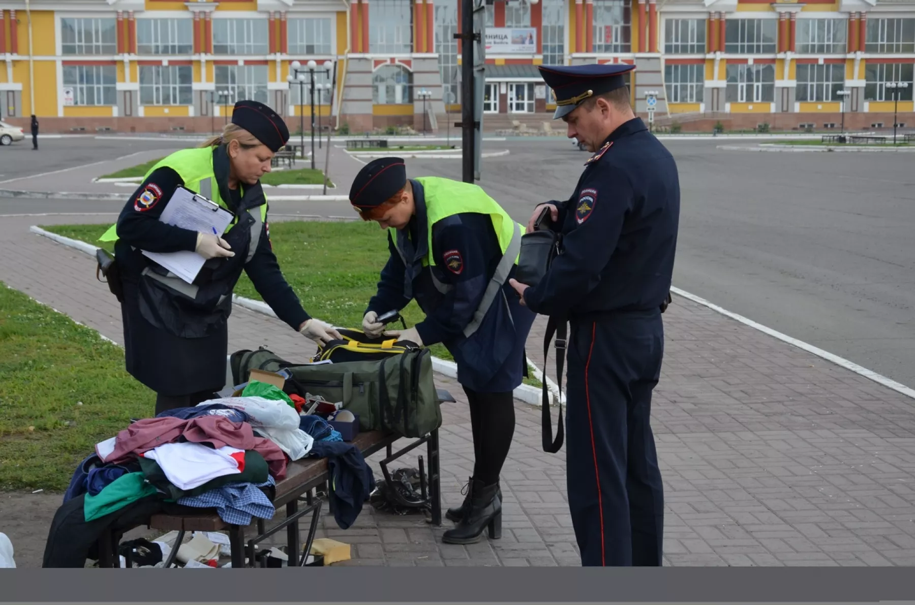 Площадь Шукшина, включая авто- и железнодорожный вокзал, были отцеплены. Кинологи со служебными собаками провели осмотр территории. Взрывотехник ОМОН изучил содержимое подозрительных предметов.