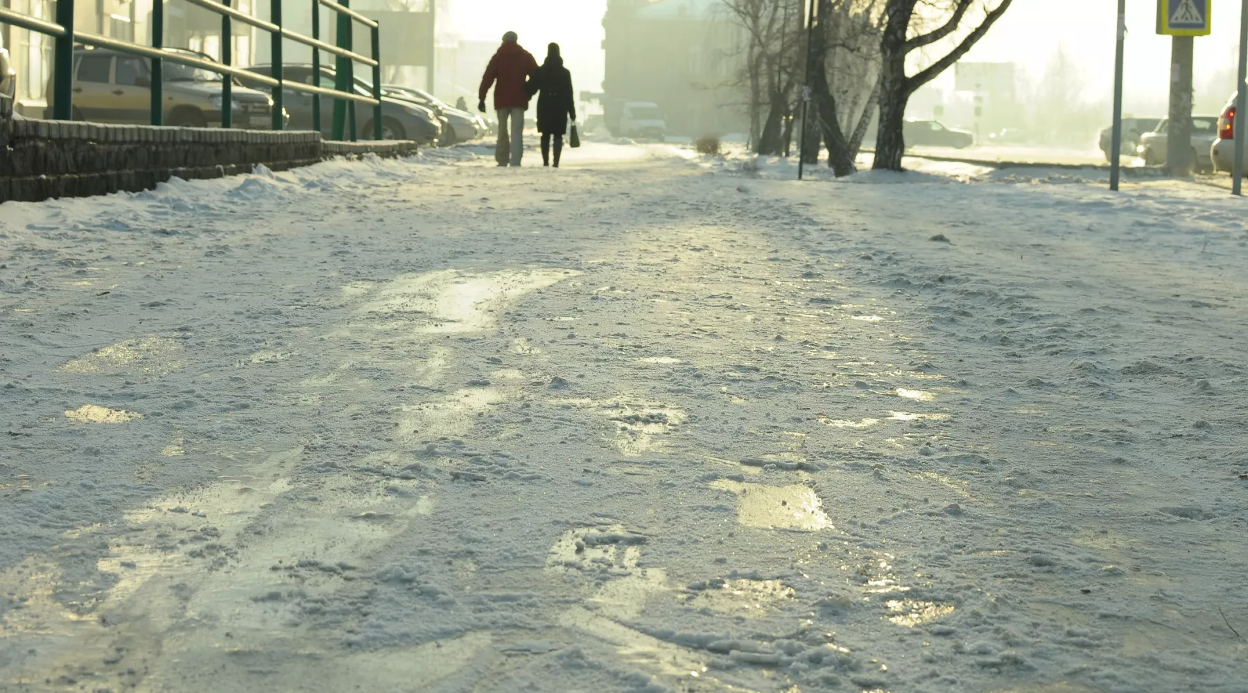 Пешеходные дорожки, площадки возле подъездов превратились в настоящий каток: людям пожилого возраста выходить сегодня на улицу лучше только в случае крайней необходимости.