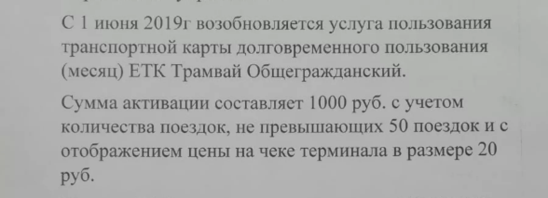 Так, транспортные карты долговременного использования в трамваях снова начнут принимать с июня. Для активации карты нужно пополнить ее на 1000 рублей, при этом оговаривается, что число поездок по карте не должно превышать 50. То есть стоимость проезда по электронному проездному в случае полного расходования числа поездок будет такой же, как по простой карте или за наличку – 20 рублей.