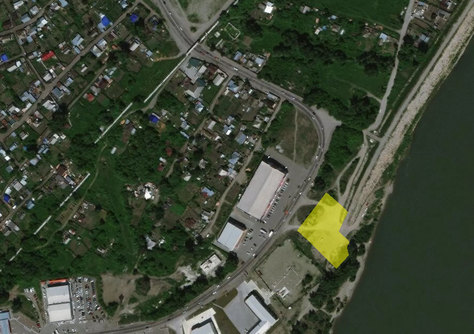 Земля расположена в 50 метрах юго-восточнее здания по ул. Советская, 194. Это как раз напротив ТЦ «Стиль», через обводную дорогу, ведущую на Зеленку.
