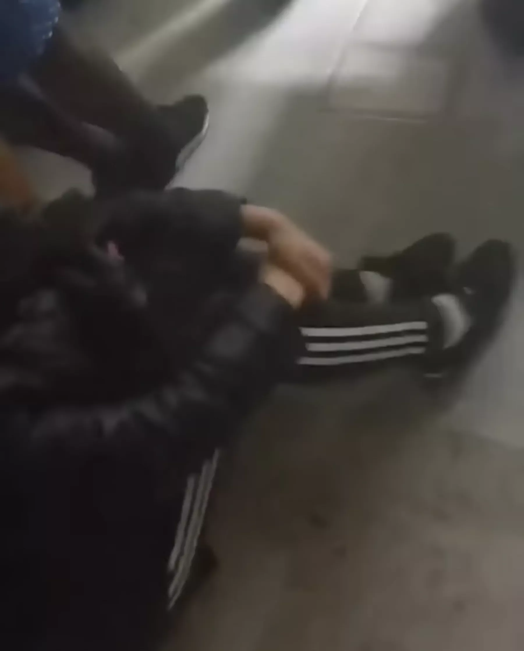 На кадрах видно, что коридор полностью заполнен людьми. Один человек сидит прямо на полу.