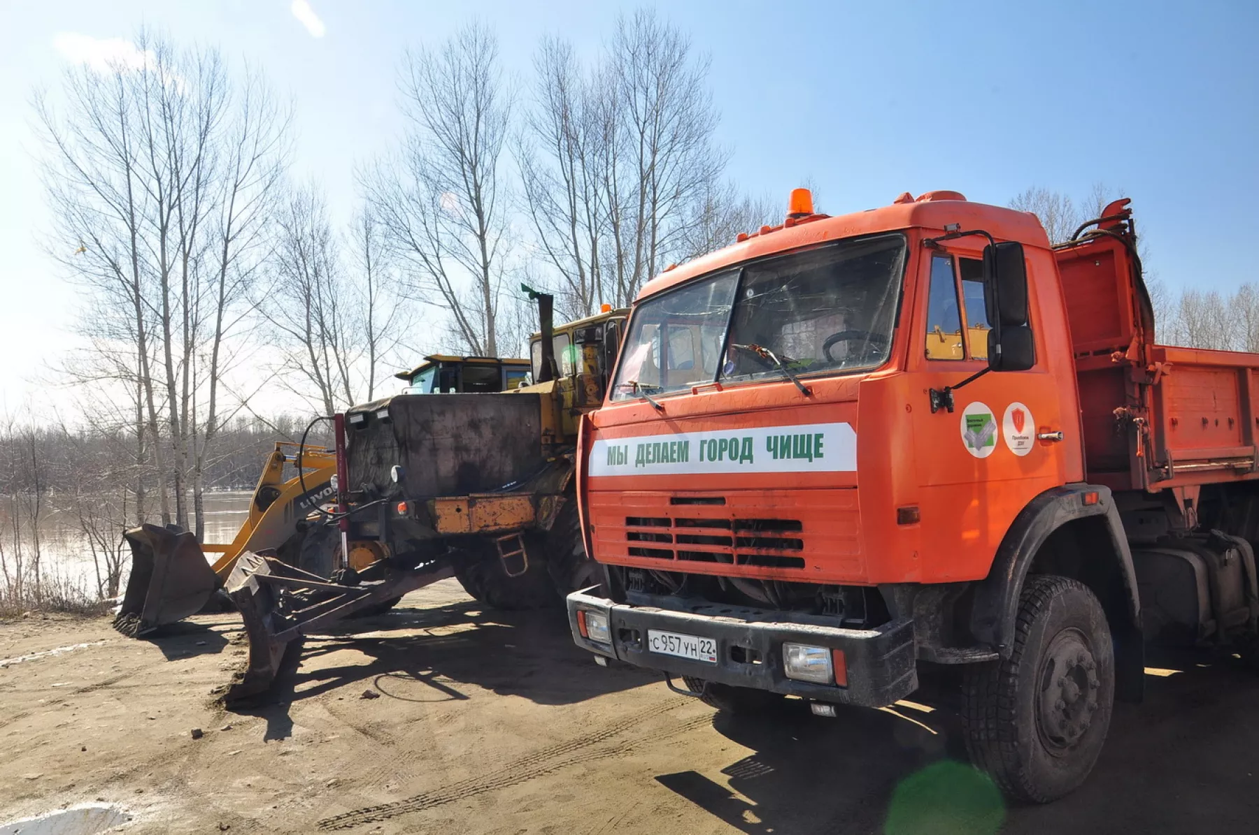 Зилы, Камаз, грейдеры и автокран встречали проезжающих по обводной дороге на Зеленку. Здесь сегодня, 17 апреля, у водомерного поста прошли учения по подготовке к паводку. Уже не впервые.