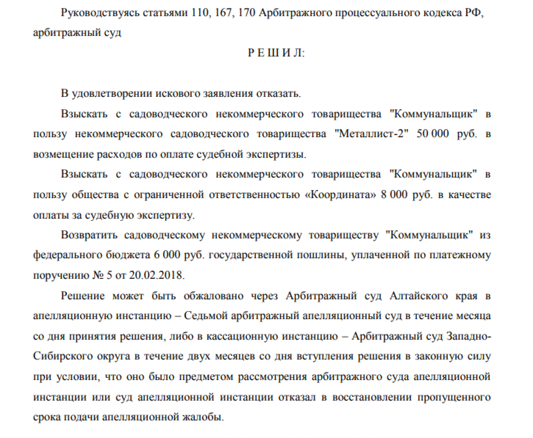 «Коммунальщик» с решением алтайского суда не согласился и с апелляциями дошел до Томского суда. И там ничего не изменилось. На «Коммунальщик», как на проигравшую сторону, еще и возложили судебные издержки – около 70 тысяч рублей. Дорога к дороге оказалась законодательно отрезана.