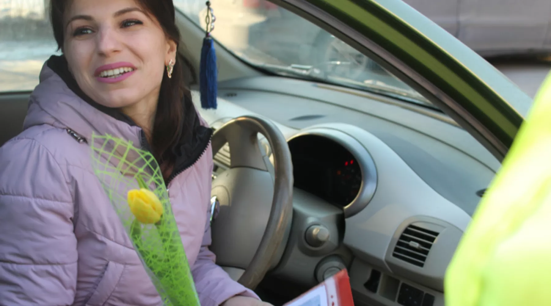 «С 8 Марта поздравляем - ПДД не нарушаем!» - инспекторы вручали женщинам цветы с праздничными пожеланиями.