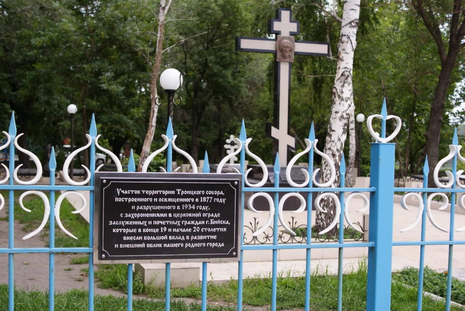 - Говоря о проектах музея, известных в Алтайском крае и в Бийске, стоит вспомнить создание историко-мемориального комплекса на месте Троицкого собора. В 2008 году только что созданный музей получил разрешение администрации города на проведение раскопок. Цель была найти фундаменты алтаря Троицкого собора и водрузить там поклонный крест, чтобы мы и наши потомки знали, где находился главный храм дореволюционного Бийска. Все расходы по созданию мемориального комплекса тогда на себя взял «Сибприбормаш». Нам помогали 60 студентов из Бийского педуниверситета, школьный археологический клуб «Наследие», верующие люди, сотрудники музея. И совместными усилиями у нас все получилось. Этот историко-мемориальный комплекс на месте взорванного в 1934 году собора теперь является ярким примером музеефикации святого места.