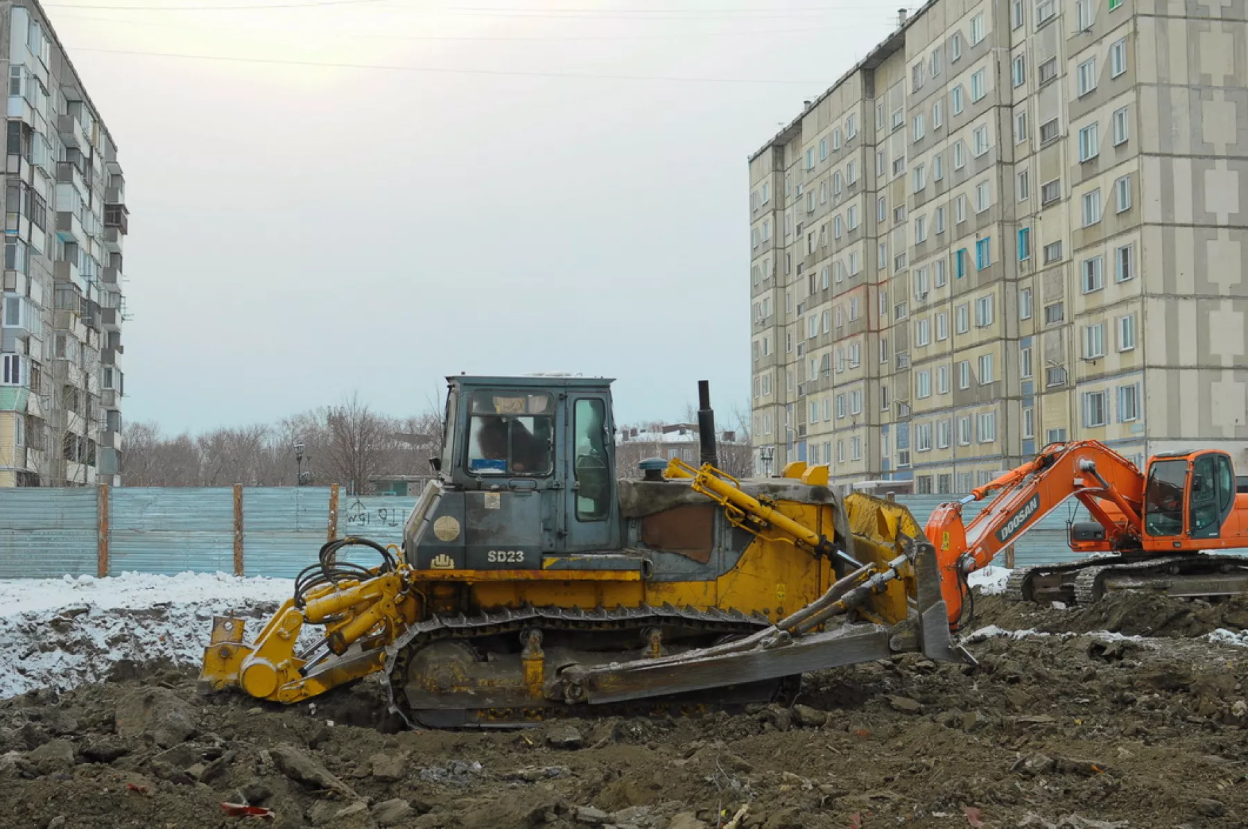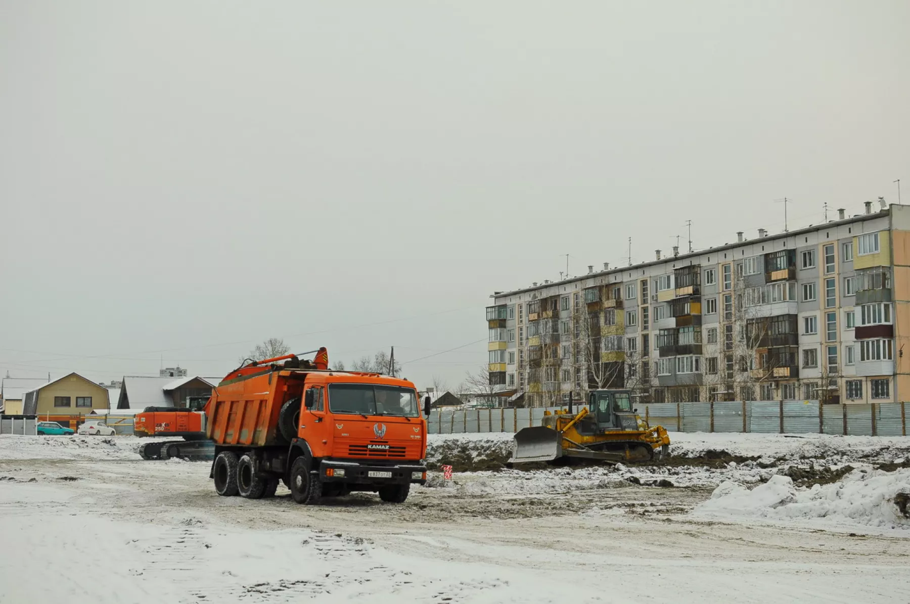 Строительство детского сада началось в декабре 2018 года. Территорию огородили по всему периметру. Сейчас на объекте ведутся земляные работы: рабочие копают котлован для закладки фундамента будущего здания.