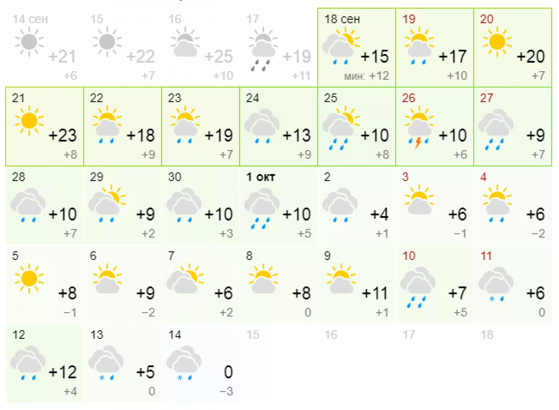 Так, например, это воскресенье сулит комфортные 20 градусов тепла и отсутствие осадков. Есть основание думать, что потепление продлится и 21 сентября.