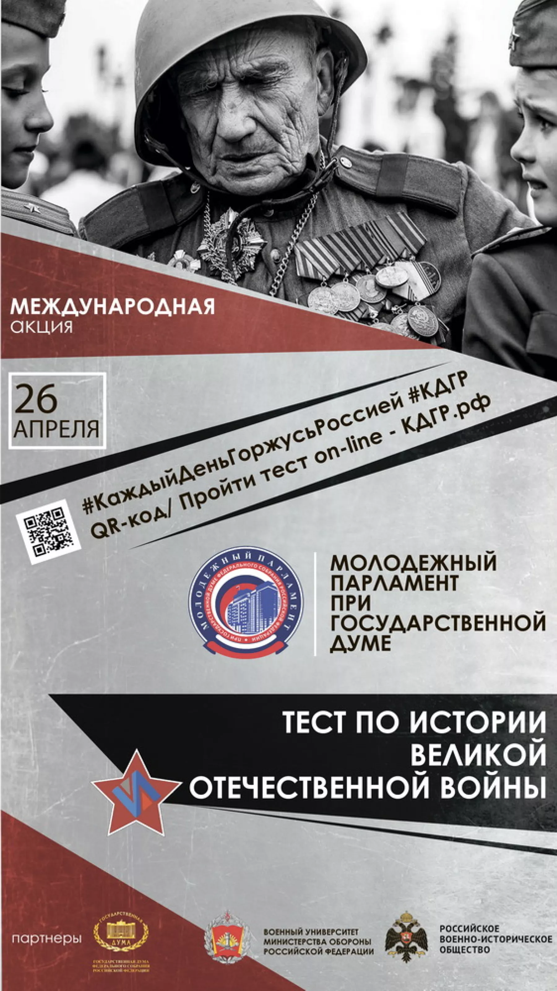 Акция проходит в преддверии Дня Победы. Предполагается, что в ней примут участие не менее полумиллиона человек. Проверить знания можно будет на специальных площадках и онлайн на сайте проекта кдгр.рф.