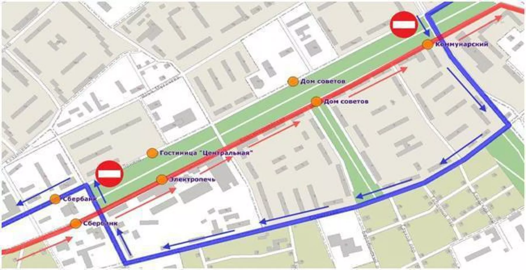 Движение транспорта организовано по прилагаемой ниже схеме.