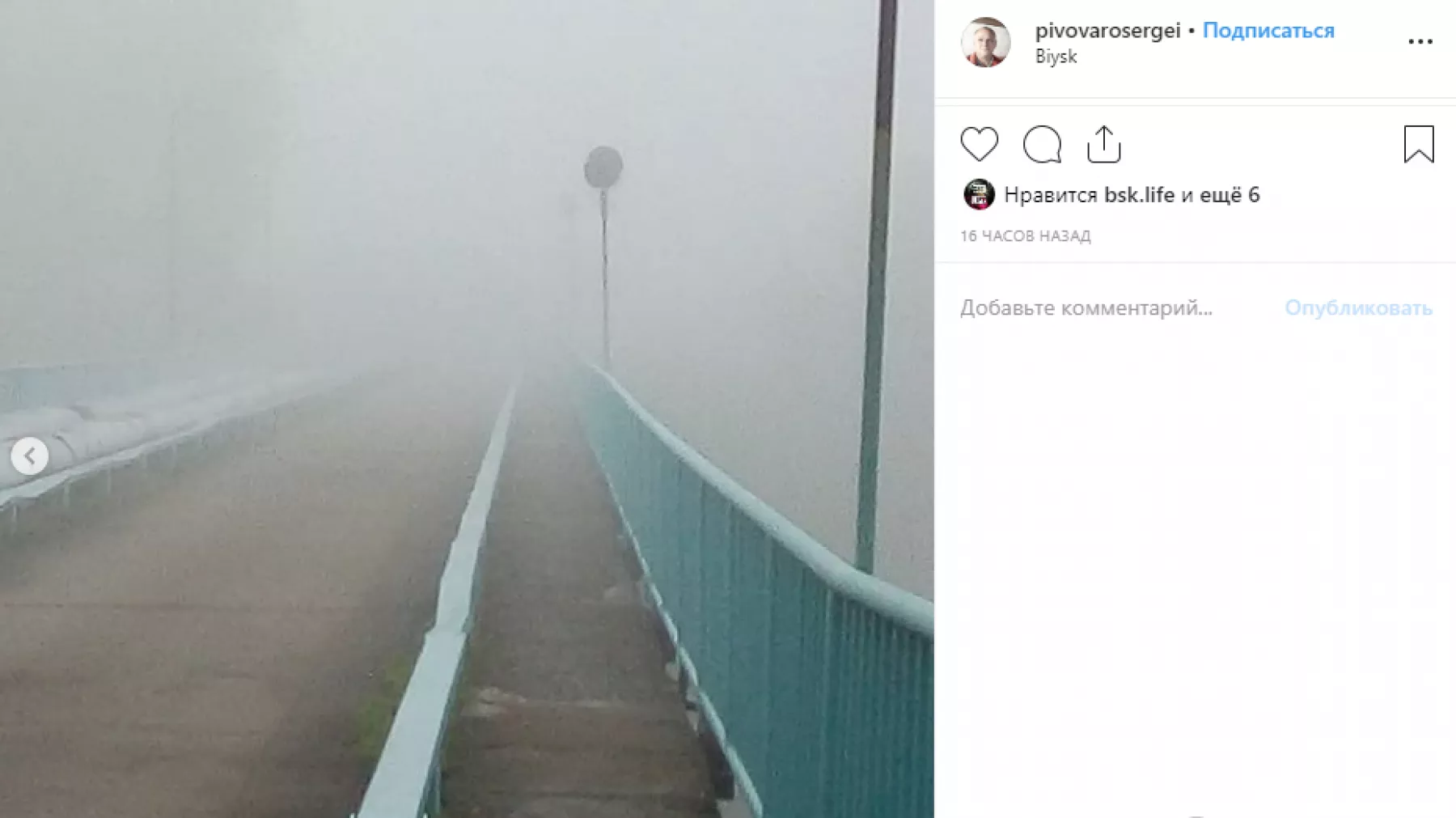 Горожане, которым по тем или иным причинам пришлось встать в субботнее утром пораньше, поделились в Instagram фотографиями туманного города. Многие пишут, мол, дожди прошли, туман тоже был, теперь жди грибов. Пока же, заметим, грибов нигде нет, хотя многие бийчане использовали выходные, чтобы проверить вои «заветные» места в лесу.