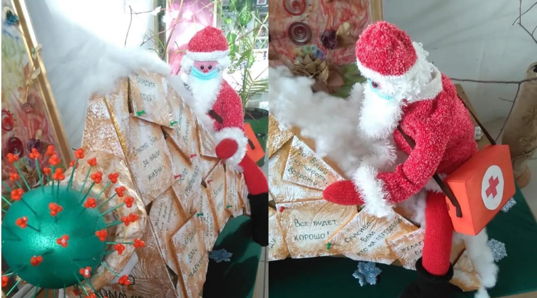 – Данная инсталляция участвовала в ежегодном городском конкурсе «Модная елка», который проводит кафедра изобразительного искусства и дизайна Алтайского государственного гуманитарно-педагогического университета им. В. М. Шукшина. В этом году она завоевала гран-при конкурса, - рассказывает Андрей Хорошаев, руководитель проекта создания инсталляции. - Задумывая участие в этом конкурсе я, как руководитель, хотел выразить благодарность нашим врачам, медсестрам, санитарам, в это нелегкое время пандемии. Обучая студентов нашему ремеслу, мы стараемся привить им то, что любое произведение, которое они создают, должно нести людям не только эстетическое наслаждение, но и вдохновлять созерцателей. Мы бы хотели подарить инсталляцию городской больнице, чтобы все врачи и больные, смотря на нее, не теряли надежду.